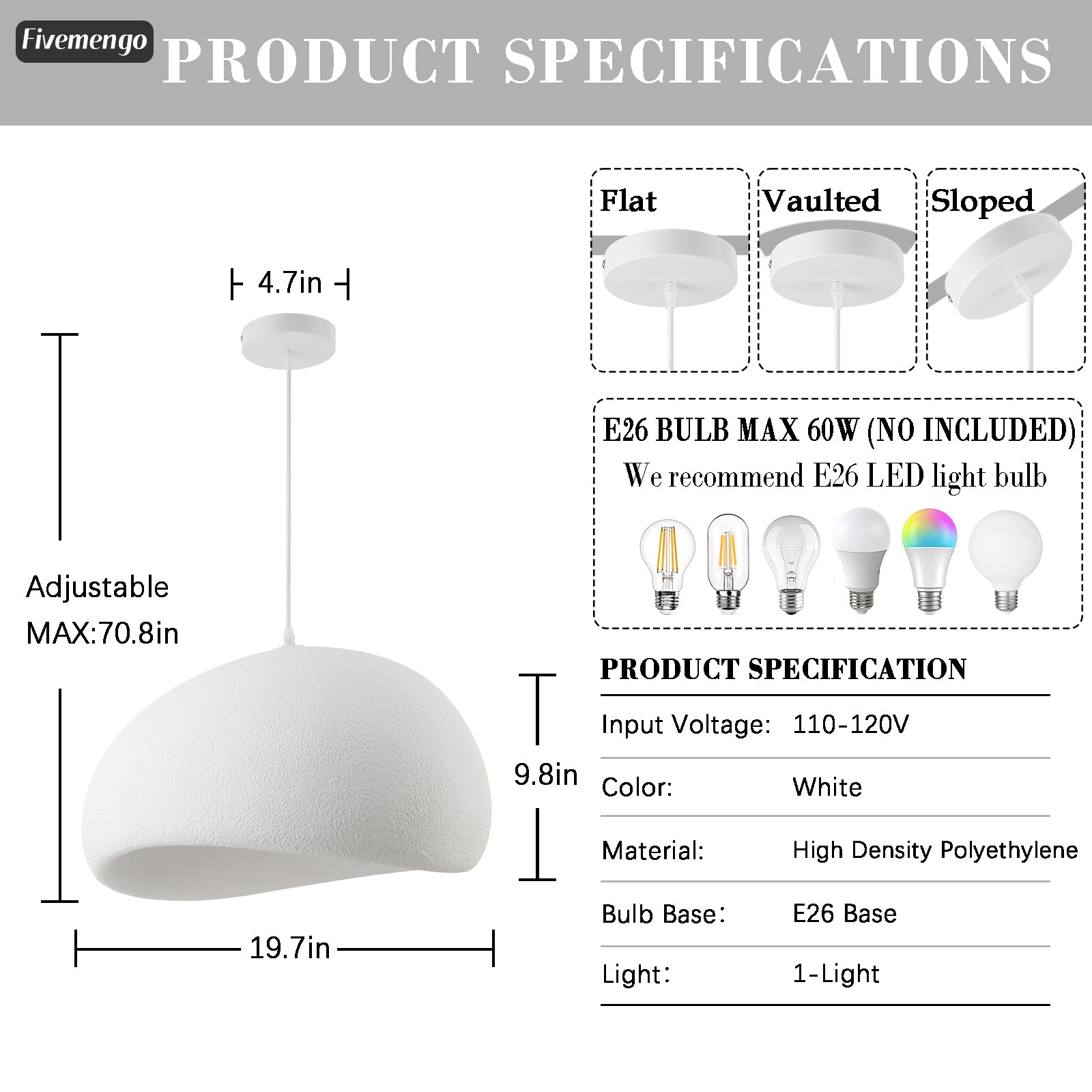 - SIZE: 19.7 inches in diameter, E26 base, perfect for kitchen islands, dining areas, and living spaces requiring focused illumination; bulb not included