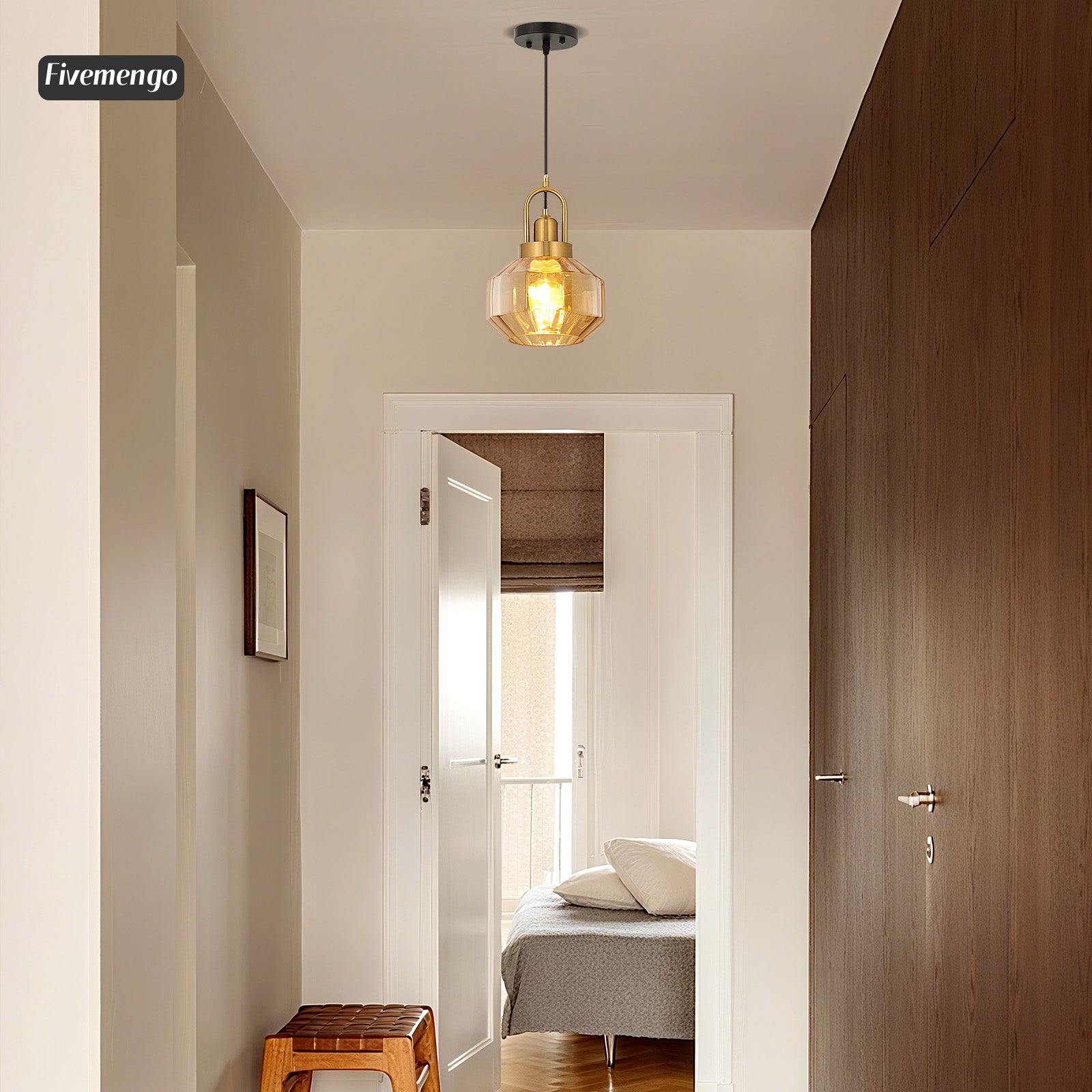 - VERSATILE DESIGN: Modern pendant light with striated amber glass shade and electroplated gold finish, the striped glass lampshade can refract extremely stunning light and shadow effects