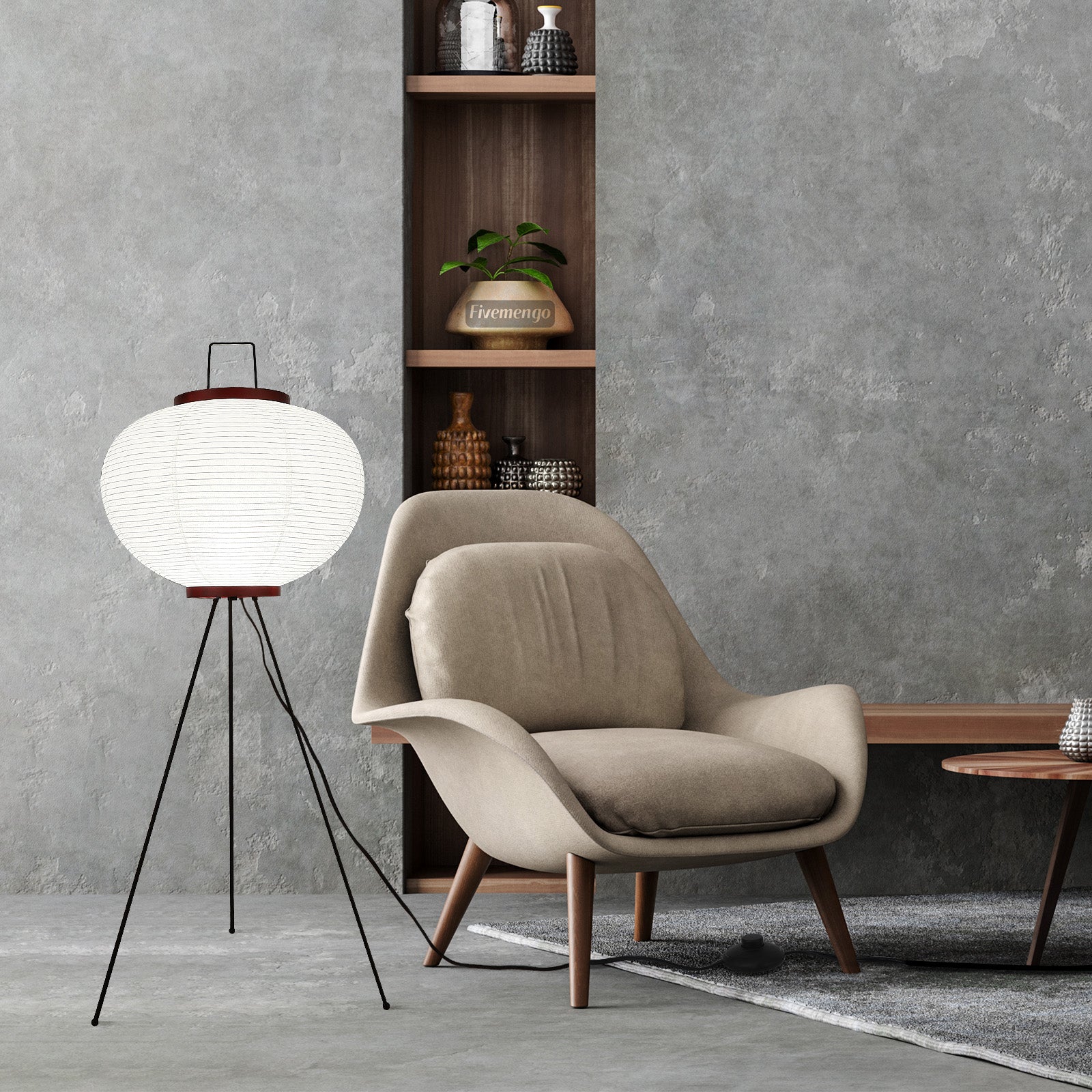 - AUTHENTIC DESIGN: Tripod floor lamp with traditional Japanese rice paper lampshade creates a soft, diffused light effect while the metal tripod stand provides modern stability and style