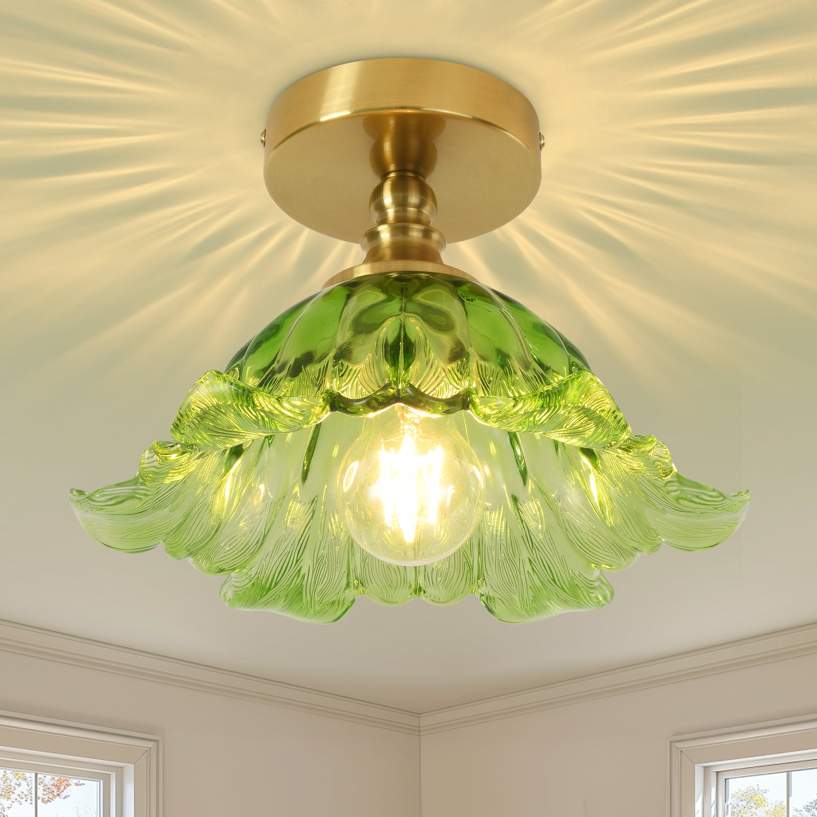 - VINTAGE DESIGN: The vintage ceiling light fixtures flush mount has an elegant green glass shade with decorative pattern and electroplated gold finish creates a classic, timeless look