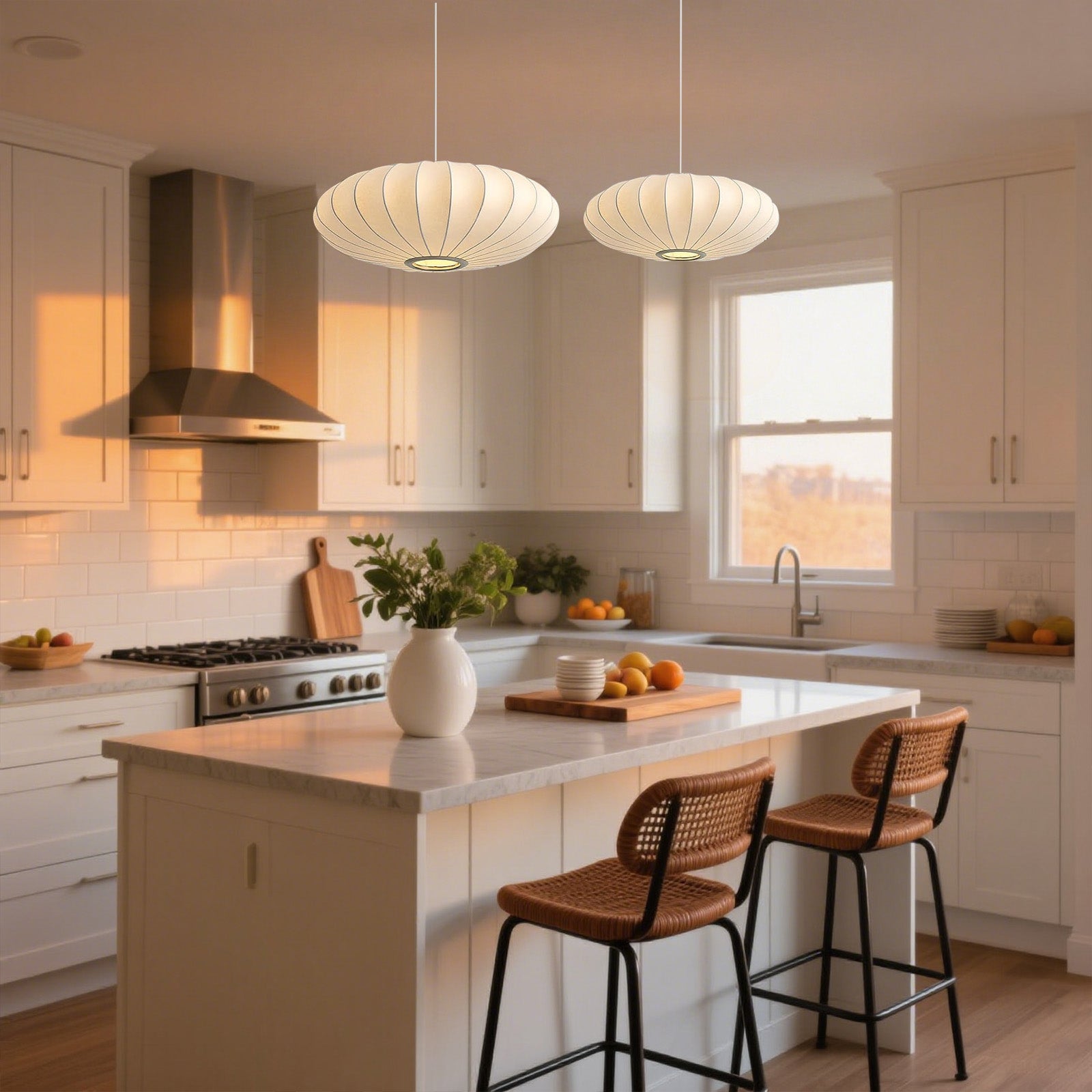 - Integrally Formed without Seams: The white silk lampshade of our bubble pendant light is intergrally formed without seams on the surface, looks simple, large and great